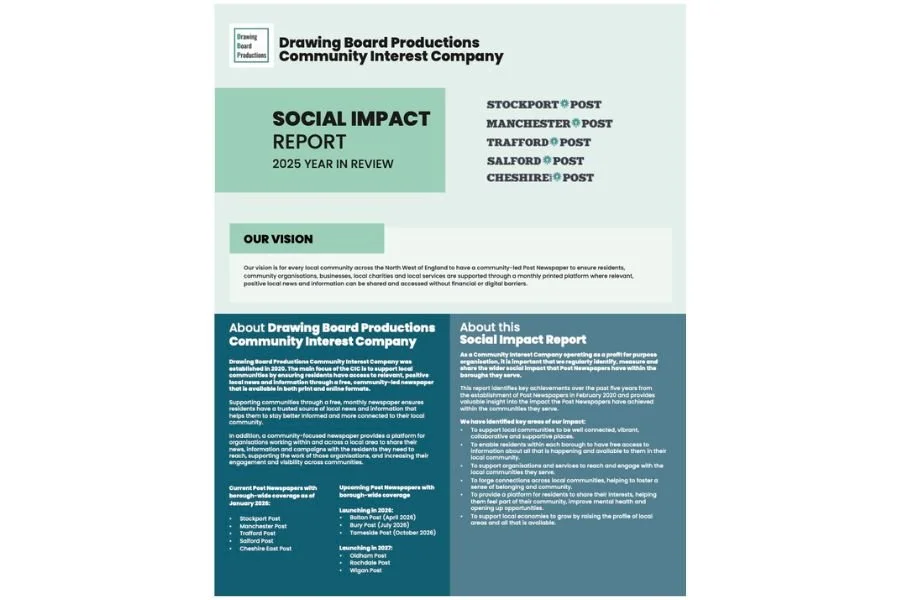 As a Community Interest Company, Drawing Board Productions CIC produces a regular report to report on the growth, outcomes and impact of Post Newspapers.