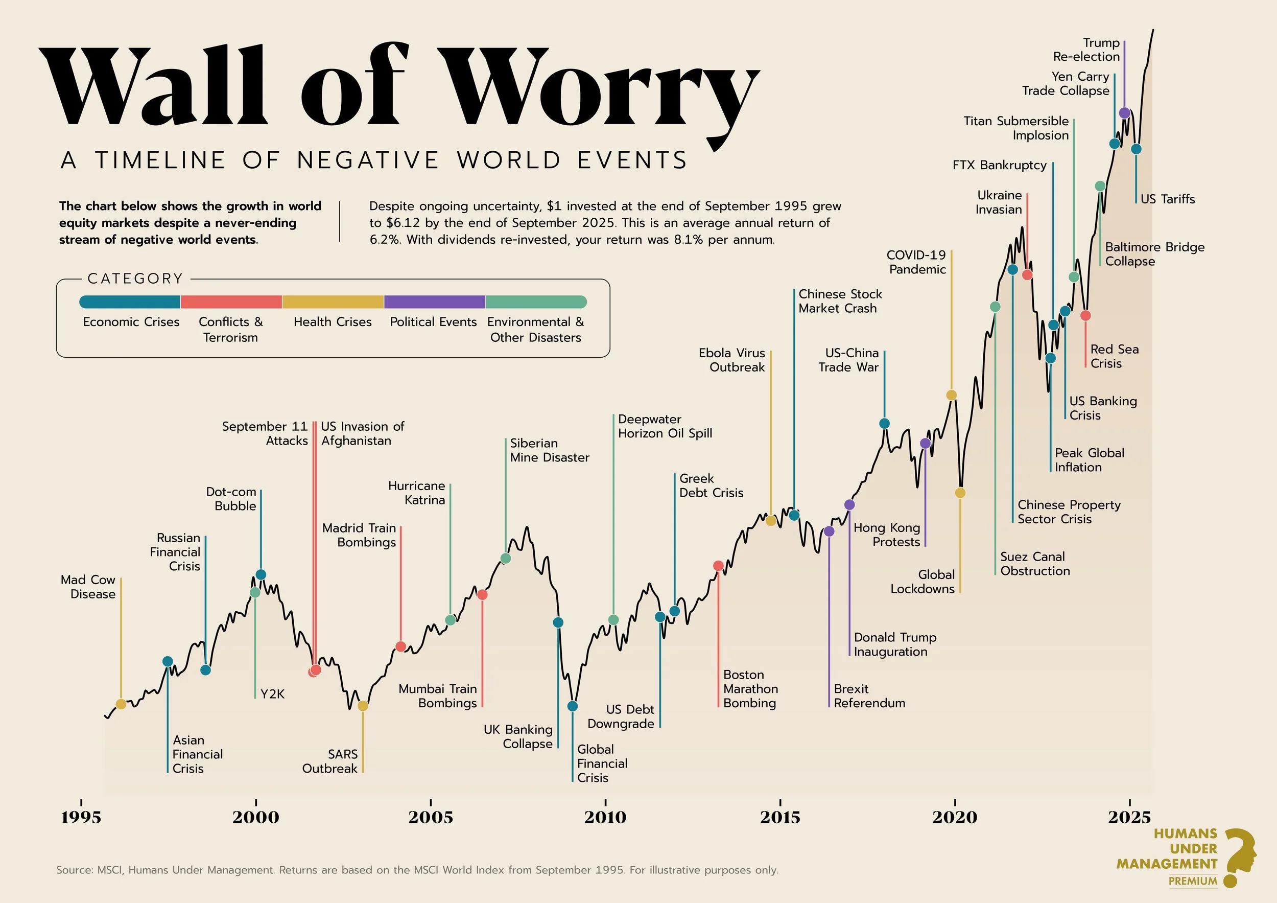 But the message is that, over timescales that are relevant to most investors, global stock markets are hugely resilient.